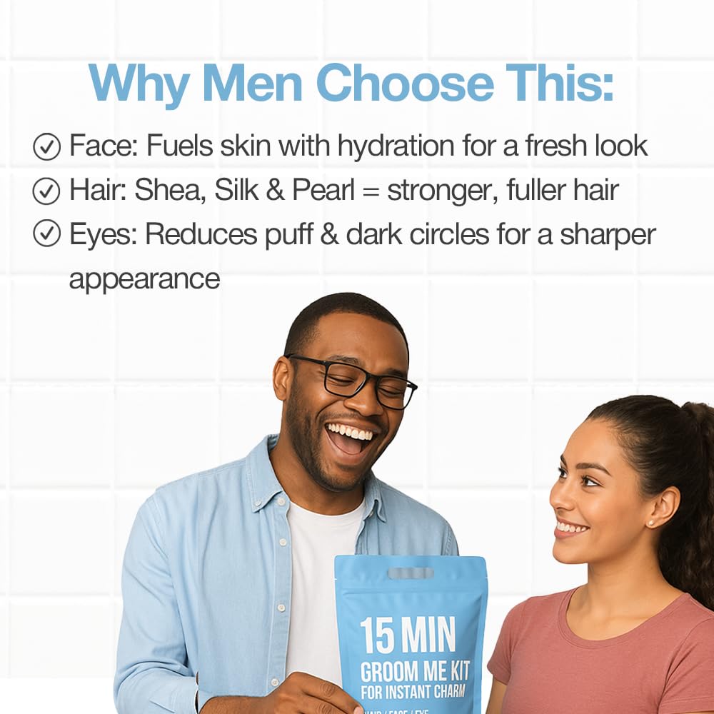 The 15 Min Groom Me Kit is tailored for men but appeals to anyone in need of a quick yet effective grooming routine. The compact design makes it equally suitable for on-the-go needs—ideal for travel, gym bags, or simply to keep on hand for an at-home spa night.